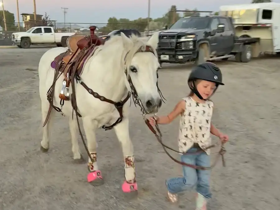 Hi! I’m Morgan, and I’m 5 years old and in kindergarten! I’ve been riding since I was 2 ½ years old, and I really love it. But my absolute favorite thing to do is ride my pony, Snowflake. I ride whenever I can, and I love being out in the fields with my horses. My favorite colors are pink, purple, and anything sparkly! I’m super excited for my lessons at Cedar Ridge Equine because I want to get better at barrel racing. This summer, I can’t wait to go to the jackpots with my mom and race in the peewee competitions. Riding is the best thing ever, and I’m always ready for the next adventure with my pony Snowflake! A few weeks ago we brought home a new mare that I am very excited to start taking lessons on this spring!