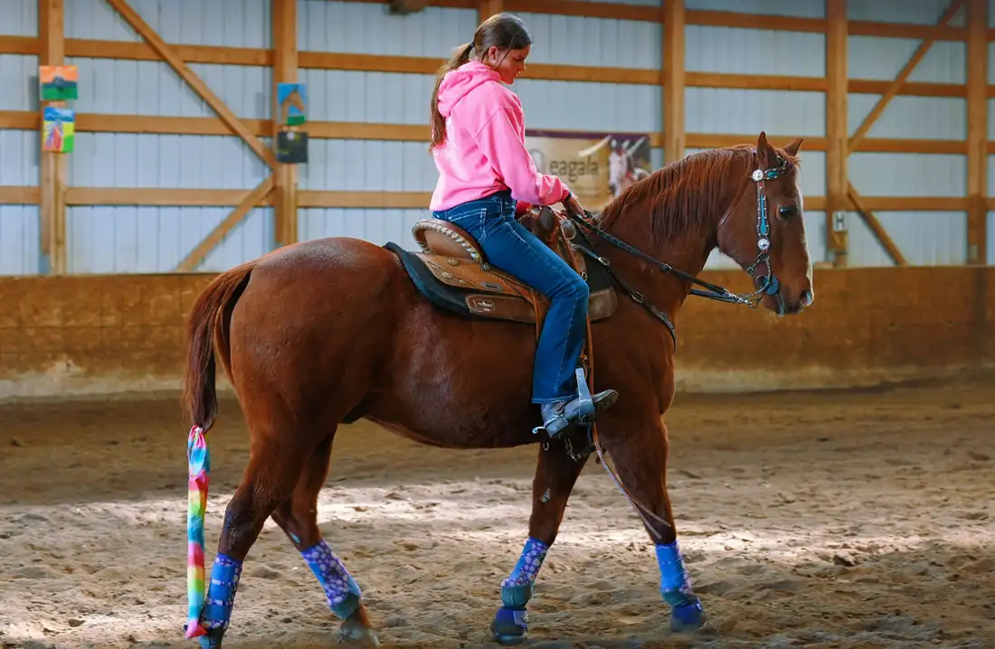 Hawk has been a part of the CRE lesson program for many many years and has taught many to ride. He is very talented/competitive at barrels and poles, yet gentle and kind enough to go through at any speed his rider wishes. He has also been roped on and competed in Cowboy Dressage. He truly a versatile mount and one of the favorite lesson horses at CRE.